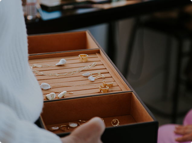 Każdy element biżuterii wybieram sama. Wszystkie elementy są projektowane i wykonywane w Polsce, z dbałością o jakość i detale.